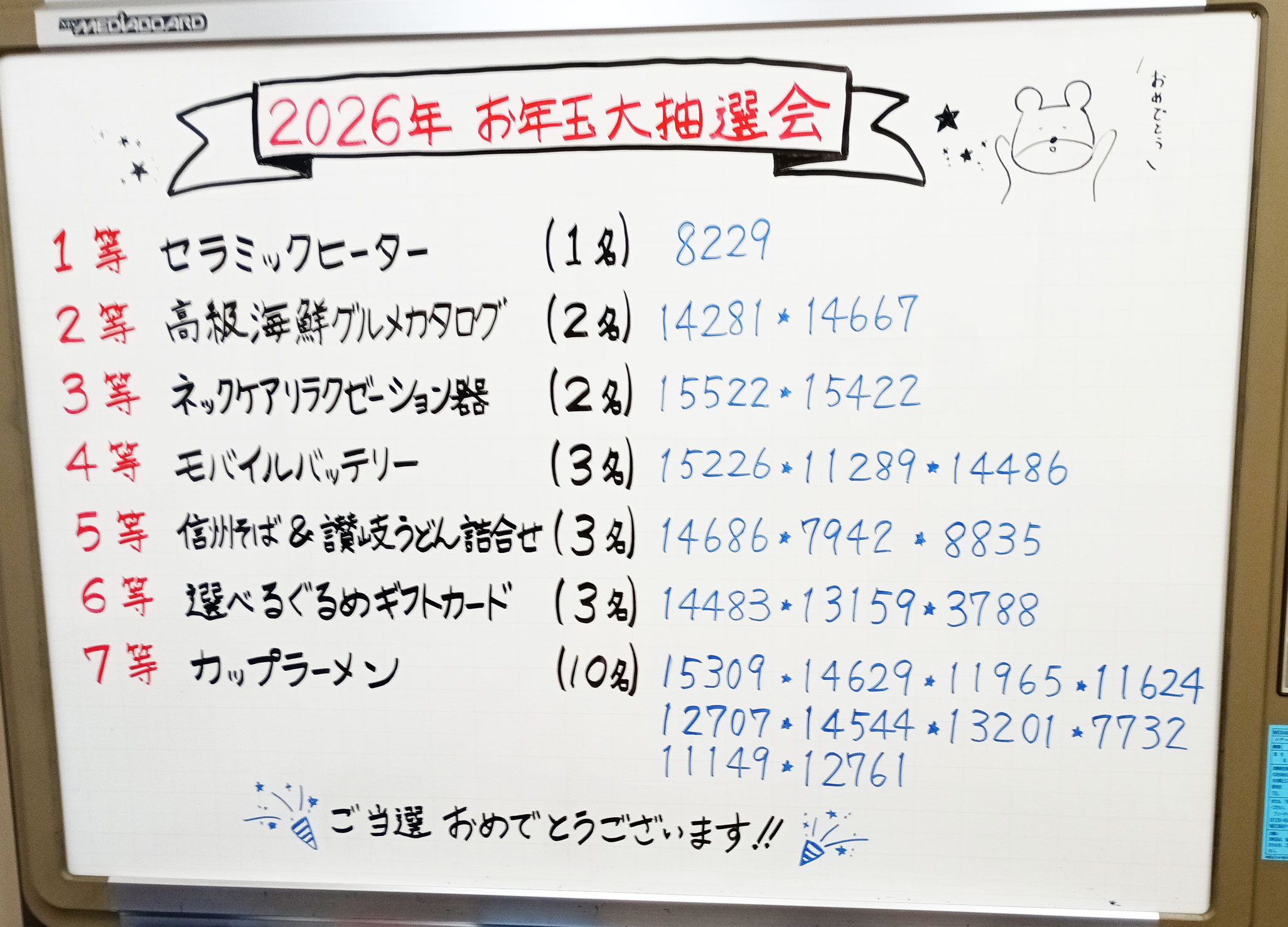2026年お年玉抽選会 《当選者発表》※番号はスタッフIDになります。